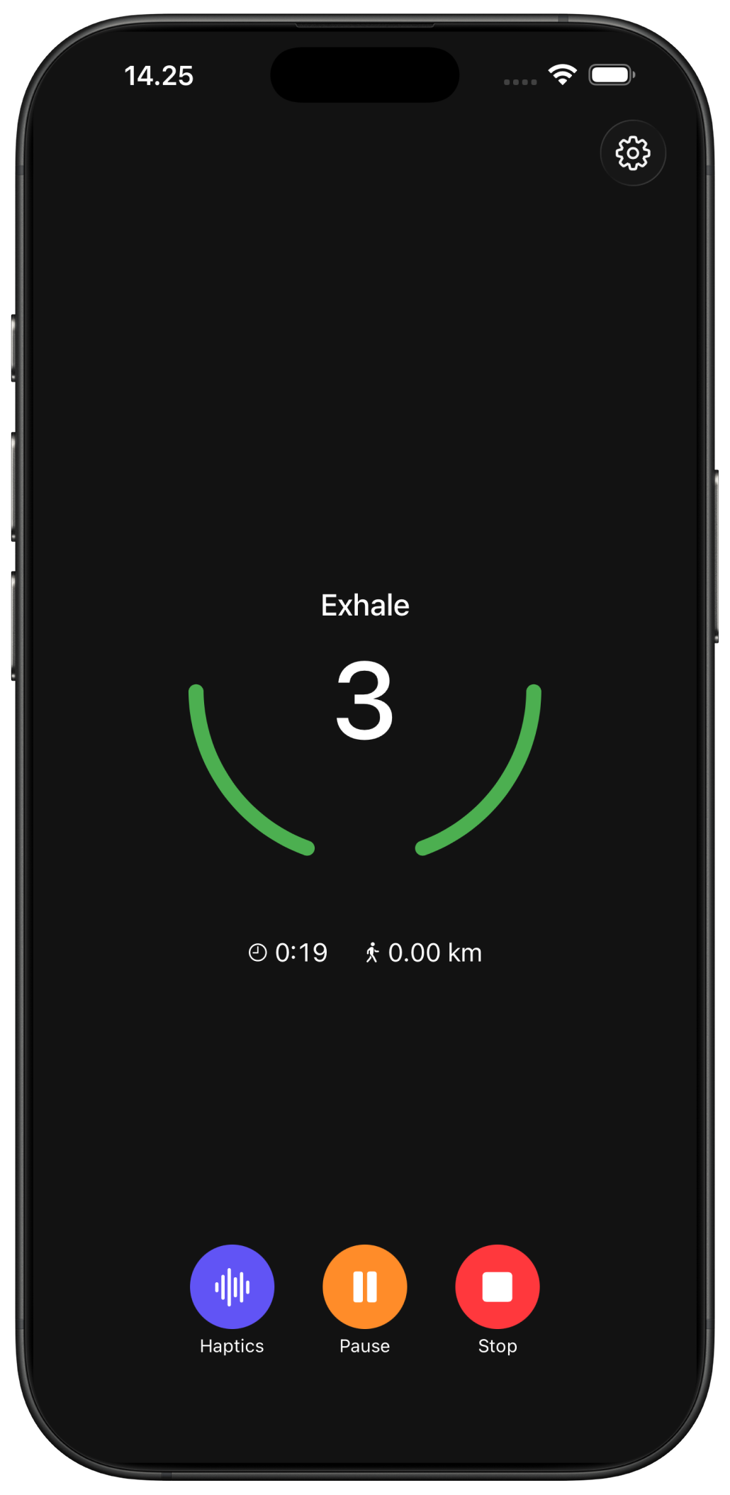 - •Haptic pulses guide your breath (hold phone in hand)